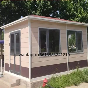 Booth guard Main Structure: Wall panels, roof, flooring, and base.Security guard booth Door and Window Systems: Security doors, large observation windows (usually sliding or casement windows), and service hatches.prefabricated guard booths Interior Facilities: Work counters, storage cabinets, seating, air conditioning/heating, lighting, and power outlets.Portable guard booth Security and Electrical Systems: Distribution panels, emergency lighting, and optionally integrated surveillance equipment. Prefabricated guard booth External Attachments: Rain canopies, illuminated signage, loudspeakers, and interfaces for barrier gate controllers. The materials and insulation configuration of mobile guard booths are determined based on the operating environment, along with the required spatial dimensions of security guard booths. Prefab guard booth is Designed for hoisting and placement as a complete unit, security guard booth for sale enables immediate functionality upon installation—truly “ready to use upon arrival.”